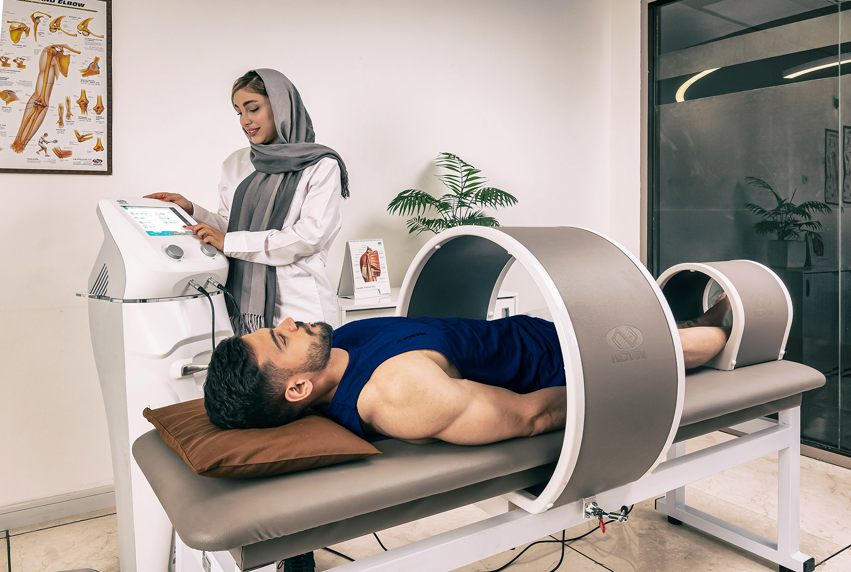 Magno 915G is a device with two output channels capable of producing continuous and pulsed electromagnetic fields with a maximum intensity of 1100G. To apply the electromagnetic field to the patient's body, it is possible to use solenoids with diameters of 30 and 70 centimeters, as well as the ability to use a single-disc applicator to apply localized electromagnetic fields.